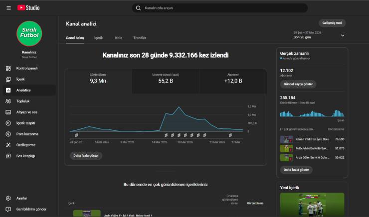 Kanal, kısa sürede yüksek izlenme almış olup doğru içerik stratejisi ile çok daha büyük rakamlara ulaşabilecek potansiyele sahiptir. Futbol nişi global olduğu için hem Türkçe hem yabancı içerikle büyütülebilir.