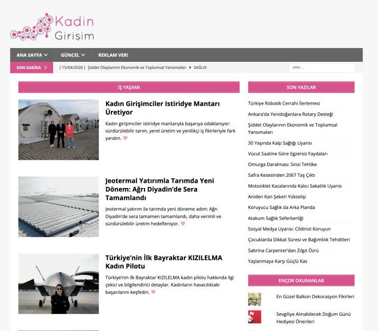 kadingirisim.com, 21 yıllık köklü geçmişiyle Türkiye’nin en eski kadın odaklı girişimcilik ve yaşam haber sitelerinden biridir. “Kadın Girişim - Kadına Dair Her Şey” sloganıyla 2005’ten beri yayın hayatını sürdürmektedir.