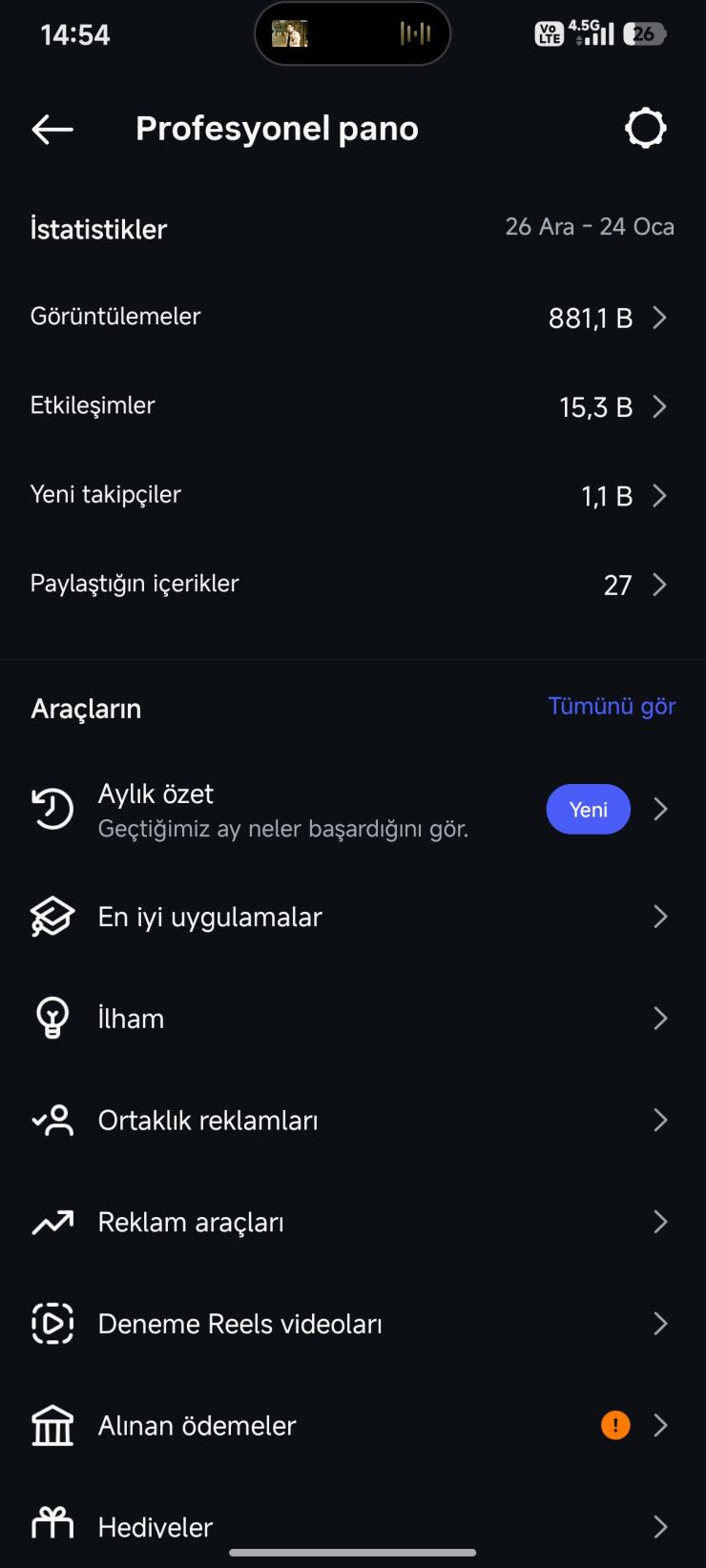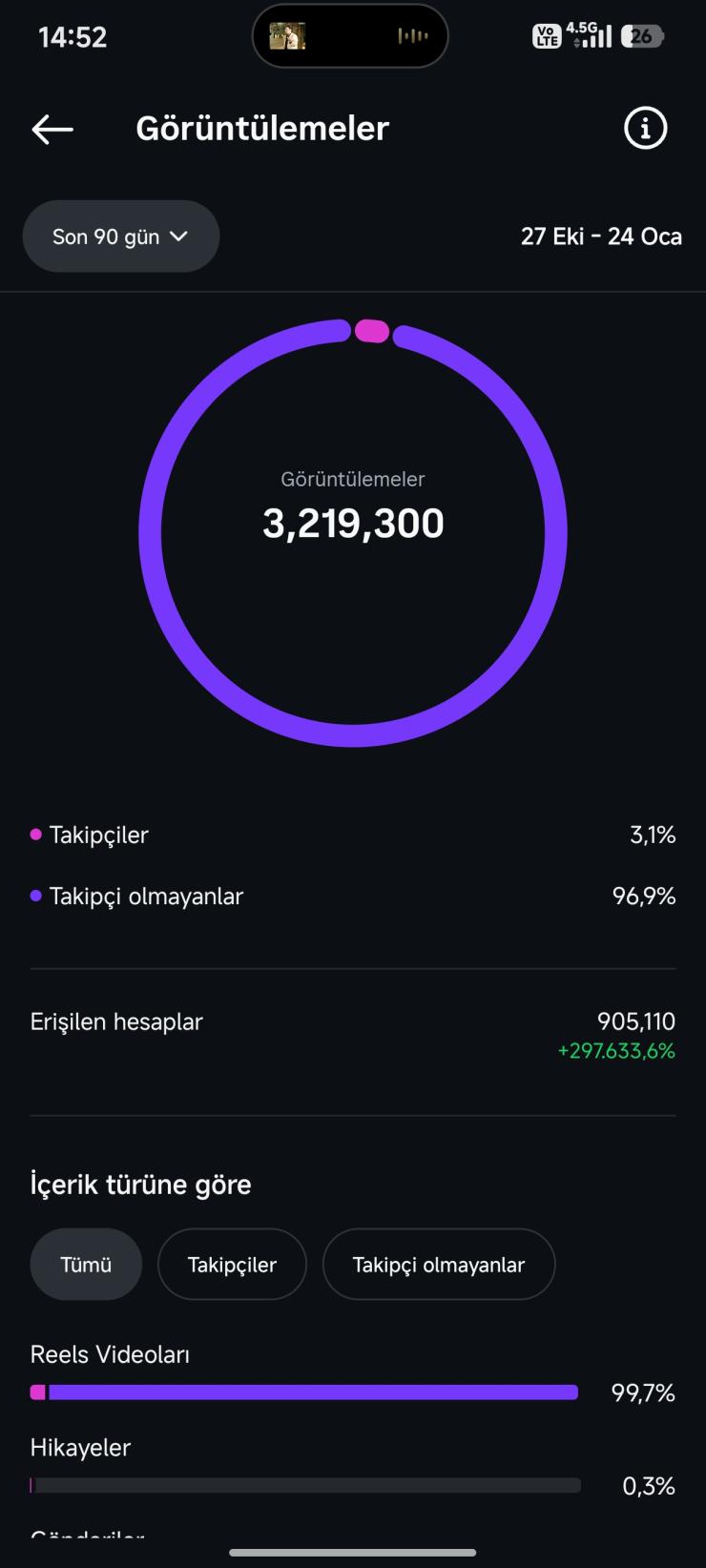 3.2M Görüntülenmeye sahip , 2.5 aylık 3500 takipçili aktif kanal. Para kazanma aktif . Toplam 57 Reels atıldı. Spam , Shadowban herhangi bir uyarı veya ceza almamıştır . Aktif olarak devam etmektedir.