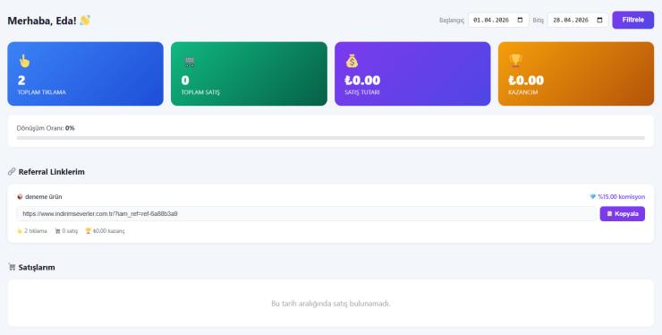 Sistem tamamen performans odaklı çalışır. Influencer tarafından paylaşılan referans linki üzerinden gelen kullanıcıların tıklama verileri, sipariş dönüşümleri ve satış istatistikleri anlık olarak kayıt altına alınır. Belirlediğiniz komisyon oranına göre otomatik kazanç hesaplaması yapılır ve tüm süreç tek panel üzerinden yönetilir.
